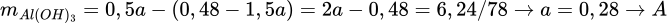 Cho 360 ml dung dịch NaOH 1M vào 500 ml dung dịch AlCl3 aM, thu được 3m gam kết tủa. Mặt khác, cho 480 ml dung dịch NaOH 1M vào 500 ml dung dịch AlCl3 aM, thu được 2m gam kết tủa. Giá trị của a là: