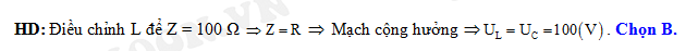 . Điều chỉnh L để Z = 100 Ω, UC = 100 V khi đó điện áp hiệu dụng giữa hai đầu cuộn cảm bằng">