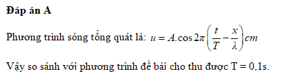 , trong đó x tính bằng cm, t tính bằng giây. Chu kì của sóng là