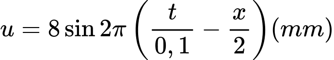 Cho một sóng ngang có phương trình là: $u = 8\sin 2\pi \left( {\frac{t}{{0,1}} - \frac{x}{2}} \right)(mm)$, trong đó x t?