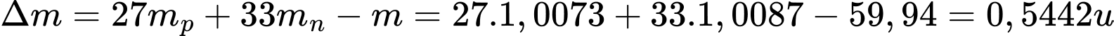 Co có khối lượng 59,940u. Biết khối lượng của prôtôn là 1,0073u; khối lượng notron là . Độ hụt khối của hạt nhân