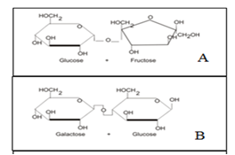 Sucrose (đường mía) gồm 1 phân tử Glucose và 1 phân tử Fructose, Lactose (đường sữa) gồm 1 phân tử Glucose và 1 phân tử galactose.