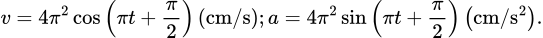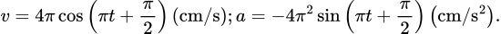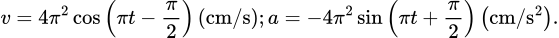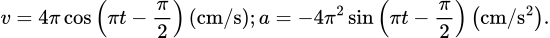 Một vật dao động điều hòa theo phương trình x = 4cos(πt) (cm). Biểu thức vận tốc và gia tốc của vật lần lượt là