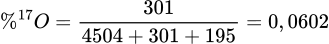→ 16O : 17O : 18O = 4504 : 301 : 195