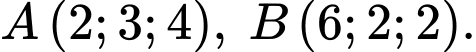 Trong không gian $Oxyz,$ cho hai điểm $A\left( 2;3;4 \right),\text{ }B\left( 6;2;2 \right).$ Tìm tọa độ của vectơ $\over?