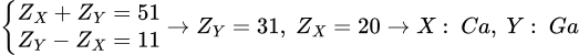 Vì X, Y thuộc 2 nhóm liên tiếp trong cùng 1 chu kỳ của nhóm A, tổng Z là 51 nên 2 nguyên tố này có số hiệu hơn kém nhau 1 (liên tiếp nhau) hoặc 11 (cách nhau nhóm B)