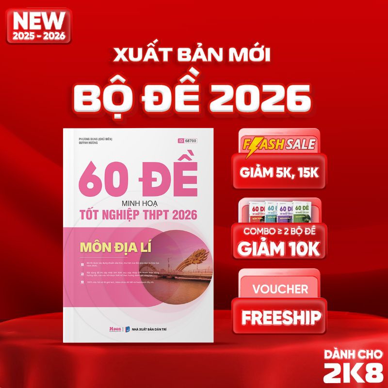 - Cuốn sách 60 ĐỀ MINH HỌA TỐT NGHIỆP THPT 2026 - MÔN ĐỊA LÍ là cuốn sách tự học, tự luyện thi chất lượng - toàn diện - cập nhật mới nhất, dành riêng cho các sĩ tử 2K8 chinh phục kỳ thi Tốt nghiệp THPT năm 2026.