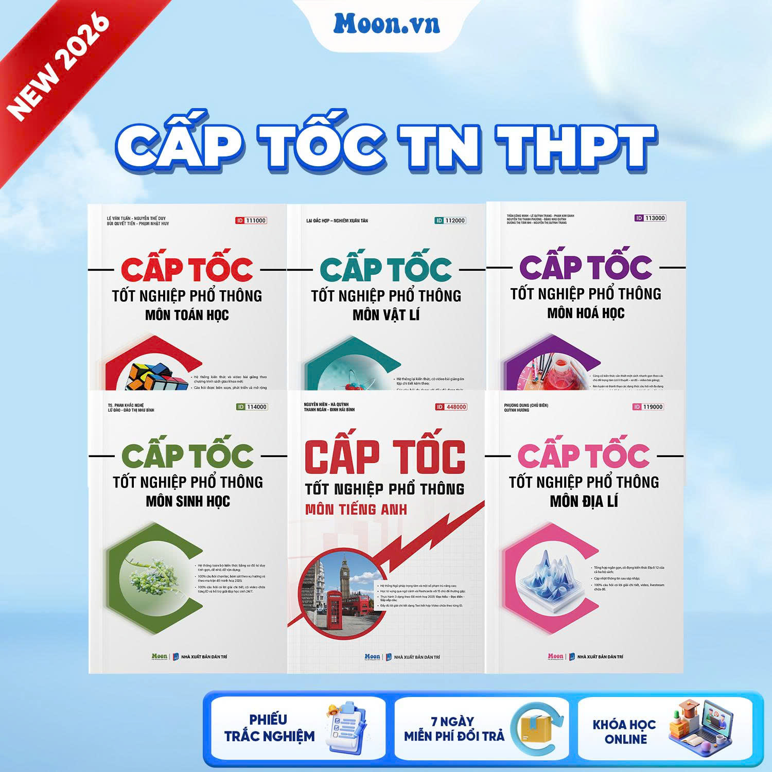 Bộ Sách Cấp Tốc Tốt Nghiệp Phổ Thông 2026 được biên soạn bởi đội ngũ giáo viên chuyên môn hàng đầu của Moon.vn, bám sát 100% cấu trúc và ma trận đề thi từ năm 2025 của Bộ GD&ĐT, giúp em ôn đúng trọng tâm, tránh lãng phí thời gian.