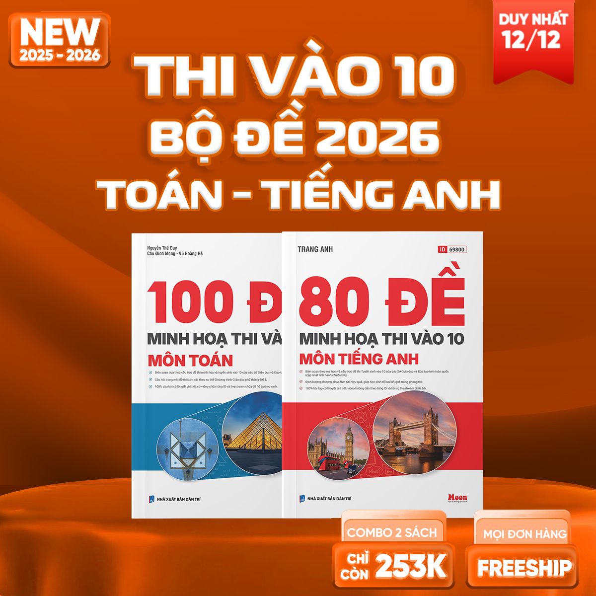 - Combo sách 100 ĐỀ MINH HỌA TOÁN & 80 ĐỀ MINH HỌA TIẾNG ANH LUYỆN THI VÀO 10 được biên soạn dựa trên cấu trúc đề minh họa và tuyển sinh chính thức của các Sở Giáo dục và Đào tạo trên cả nước, nhằm giúp học sinh lớp 9 tự luyện đề một cách toàn diện, chuyên sâu, nắm vững mọi cấu trúc và dạng bài có thể gặp trong kỳ thi.
