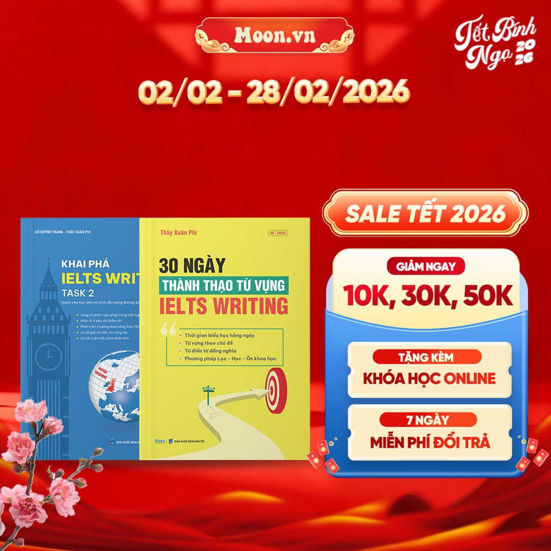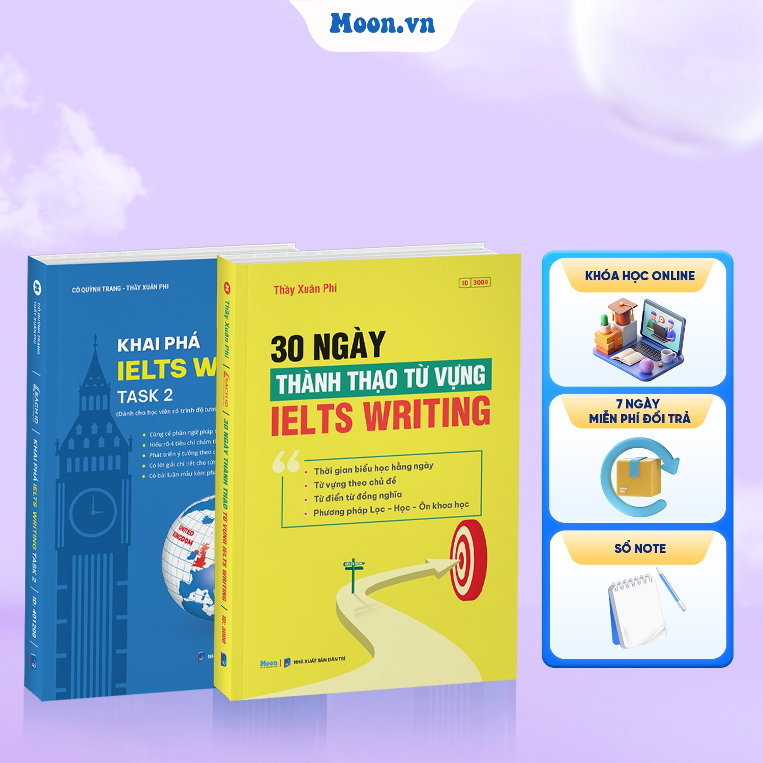Combo 2 sách ID MoonBook Khai phá IELTS Writing Task 2 và 30 ngày thành thạo từ vựng IELTS Writing