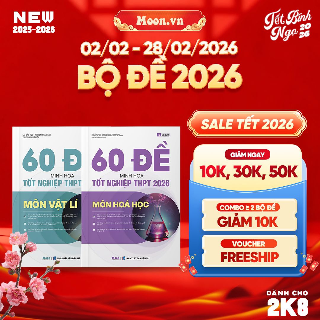 - Combo sách gồm 2 cuốn: SÁCH 60 ĐỀ MINH HỌA TỐT NGHIỆP THPT 2026 - MÔN VẬT LÍ VÀ SÁCH 60 ĐỀ MINH HỌA TỐT NGHIỆP THPT 2026 - MÔN HÓA HỌC
