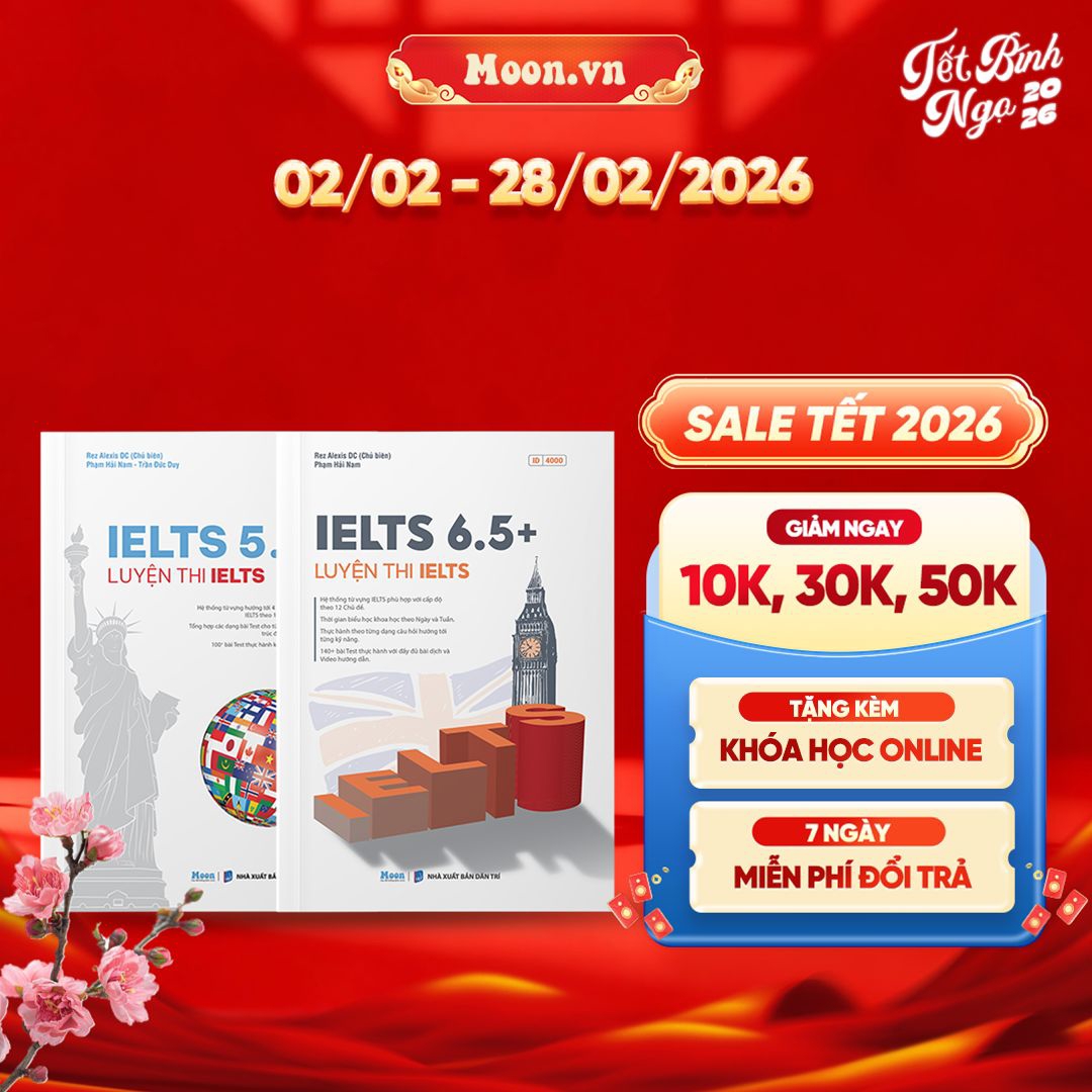 Combo 2 sách ID MoonBook Luyện thi IELTS 5.5+ và Luyện thi IELTS 6.5+