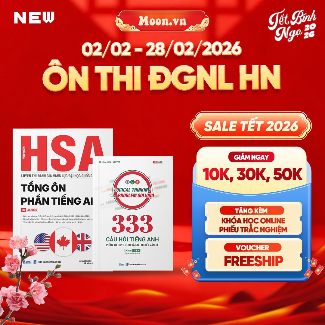 Sách ID Combo Moon HSA - Tổng Ôn Phần Tiếng Anh & 333 Câu Hỏi Tiếng Anh Phần Tư Duy Logic Và Giải Quyết Vấn Đề