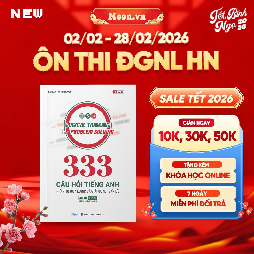 Cuốn sách "333 Câu Hỏi Tiếng Anh - Phần Tư Duy và Giải Quyết Vấn Đề" được thiết kế đặc biệt để giúp học sinh chuẩn bị cho phần thi Tiếng Anh trong kỳ thi Đánh giá năng lực Hà Nội (HSA), với trọng tâm vào phát triển khả năng tư duy logic và kỹ năng giải quyết các dạng thức câu hỏi Tiếng Anh của . Cuốn sách này là tài liệu ôn luyện lý tưởng cho học sinh nâng cao năng lực tư duy phản biện và sử dụng tiếng Anh hiệu quả để hoàn thành bài thi Đánh giá năng lực của Đại học Quốc gia Hà Nội - HSA.