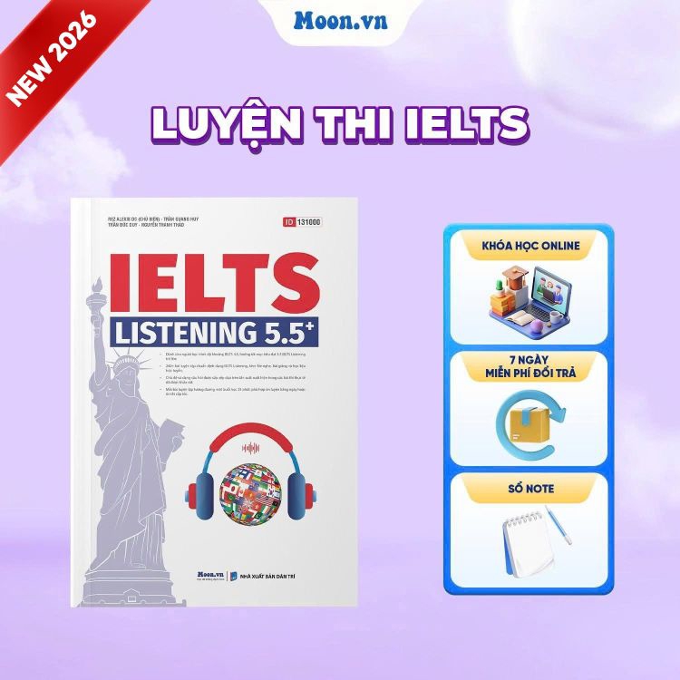 Mỗi bài luyện tập được thiết kế tương đương một buổi học 25 phút, phù hợp để ôn luyện hàng ngày hoặc ôn thi cấp tốc. Tra mã ID trên Moon.vn để nghe audio, xem bài giảng và học liệu trực tuyến kèm theo.